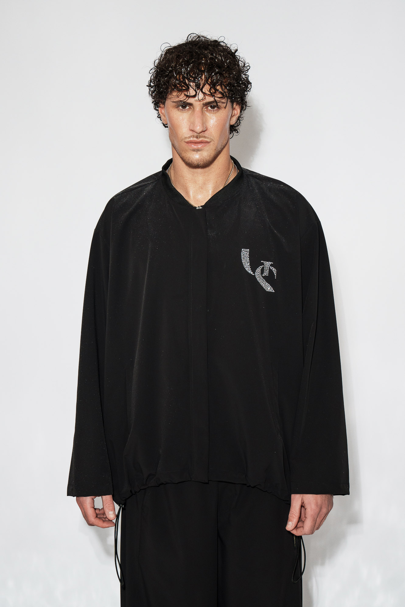 Στο σημείο της καρδιάς το μονόγραμμα της Garçon Sauvage σε Swarovski crystals λειτουργεί ως διακριτική υπογραφή.