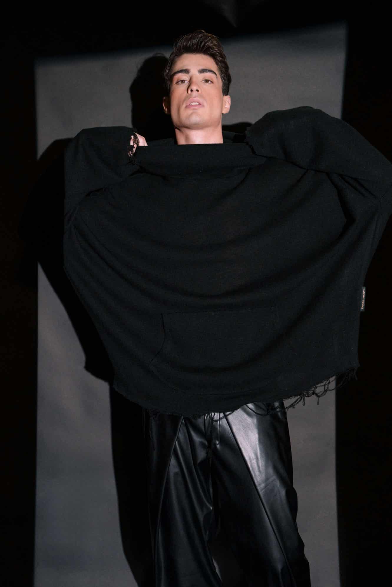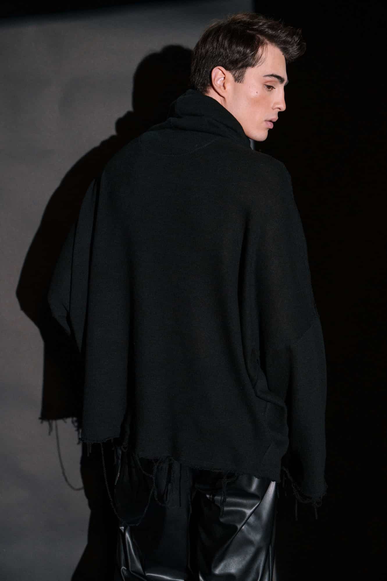 Οversized μαύρο πουλόβερ με εντυπωσιακό γιακά, σχεδιασμένο για απόλυτη άνεση.