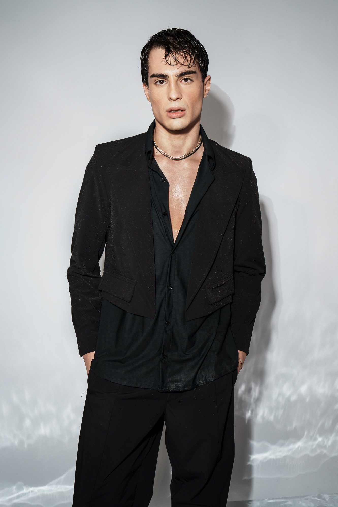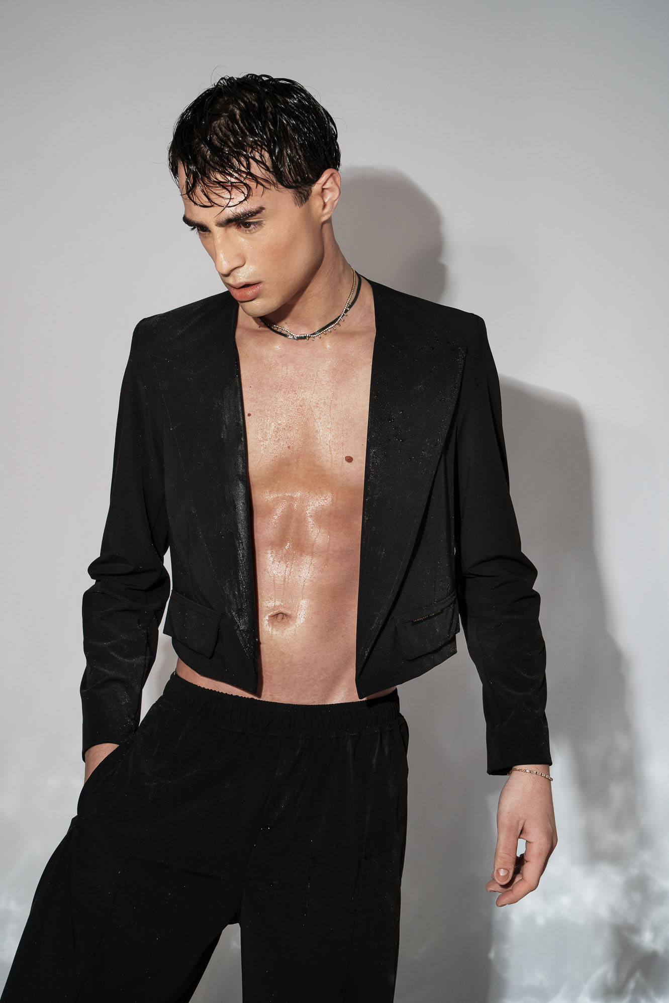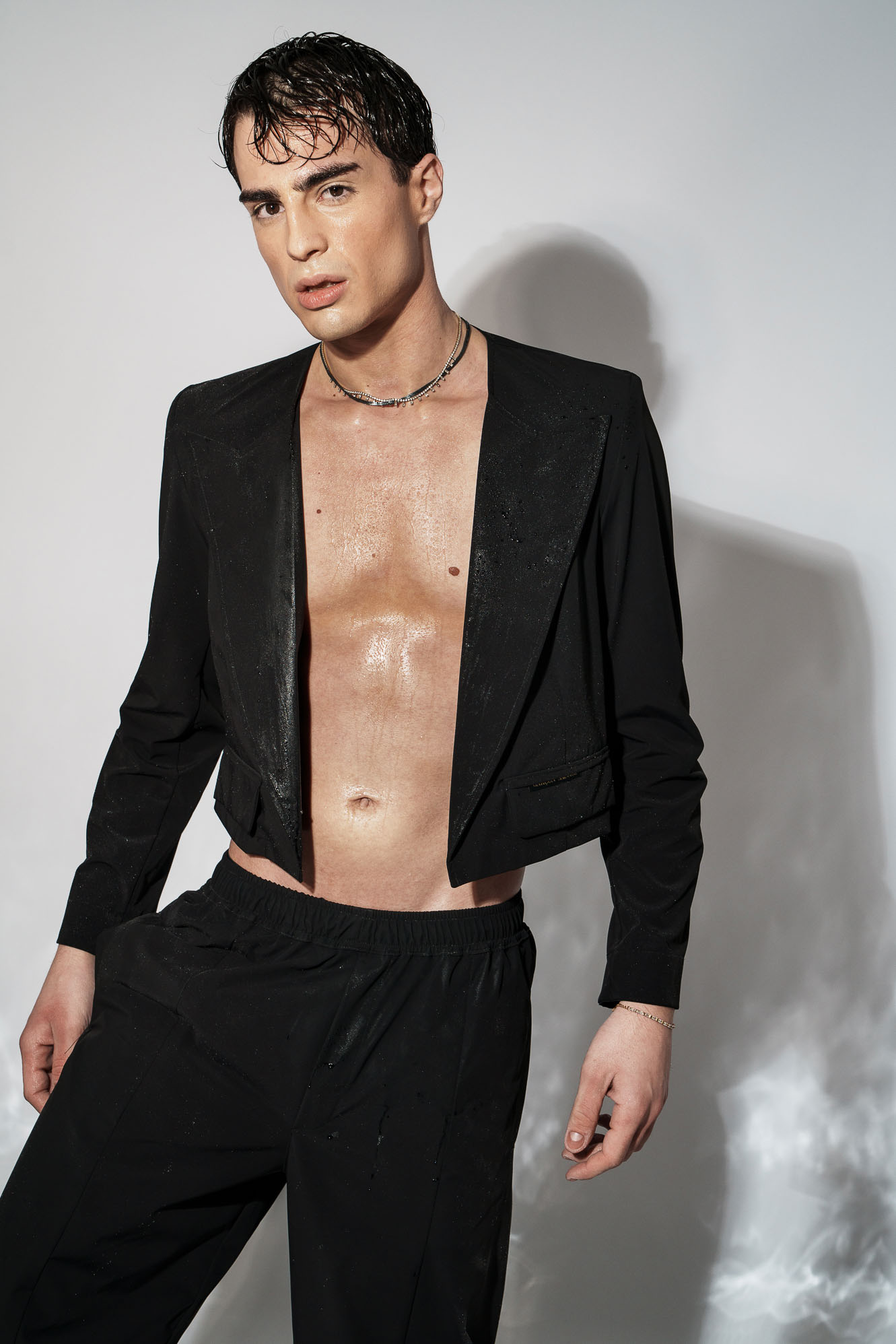 Το μισό πέτο δημιουργεί καθαρή γραμμή και ένταση χωρίς υπερβολή, δίνοντας στο ρούχο άμεσα αναγνωρίσιμο χαρακτήρα.