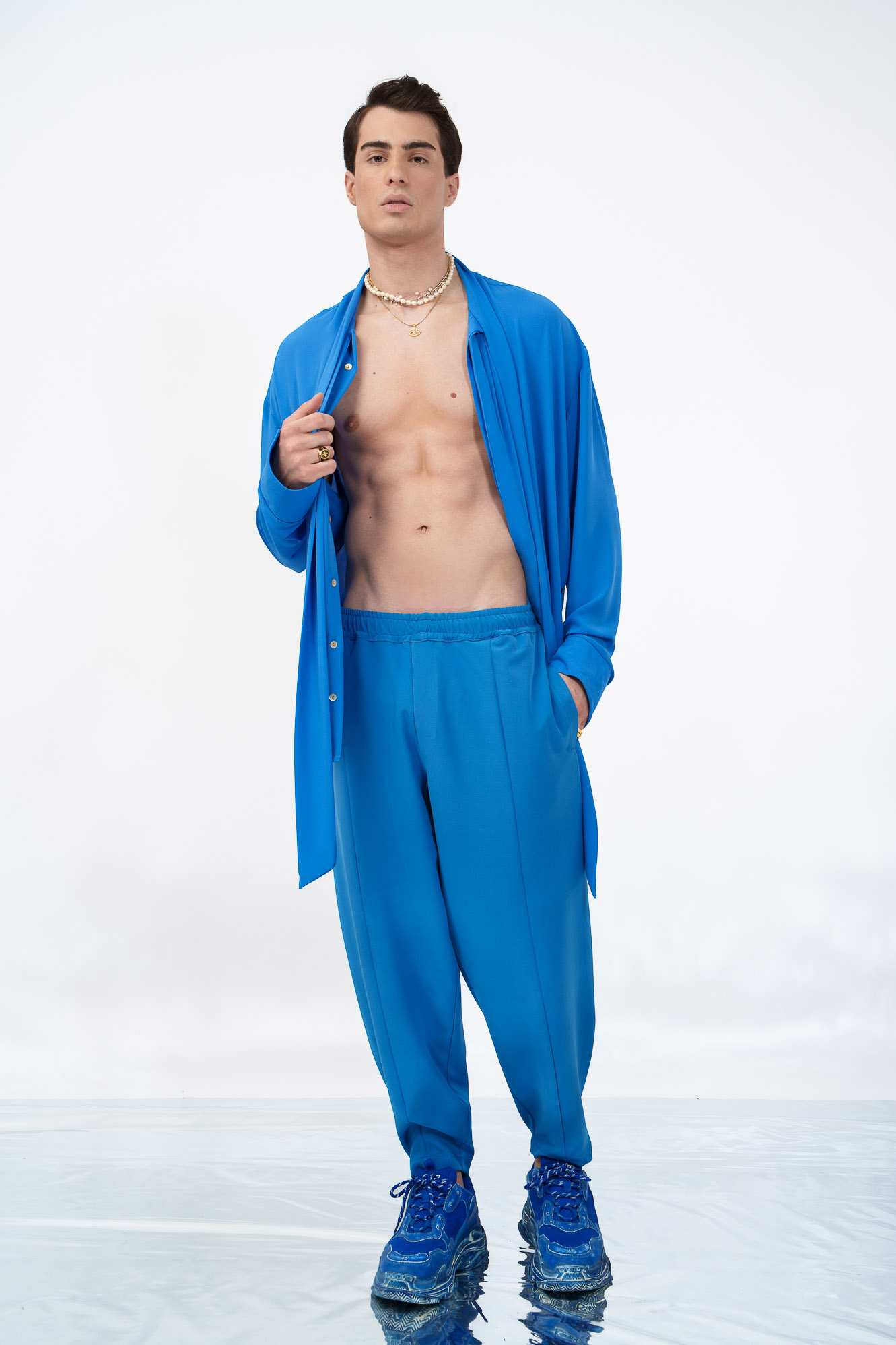 Κατασκευασμένο από βουτυρένιο κοστουμόπανο σε βαθύ raf μπλε, εφαρμόζει φυσικά στο σώμα και φοριέται εύκολα σε διαφορετικές περιστάσεις.