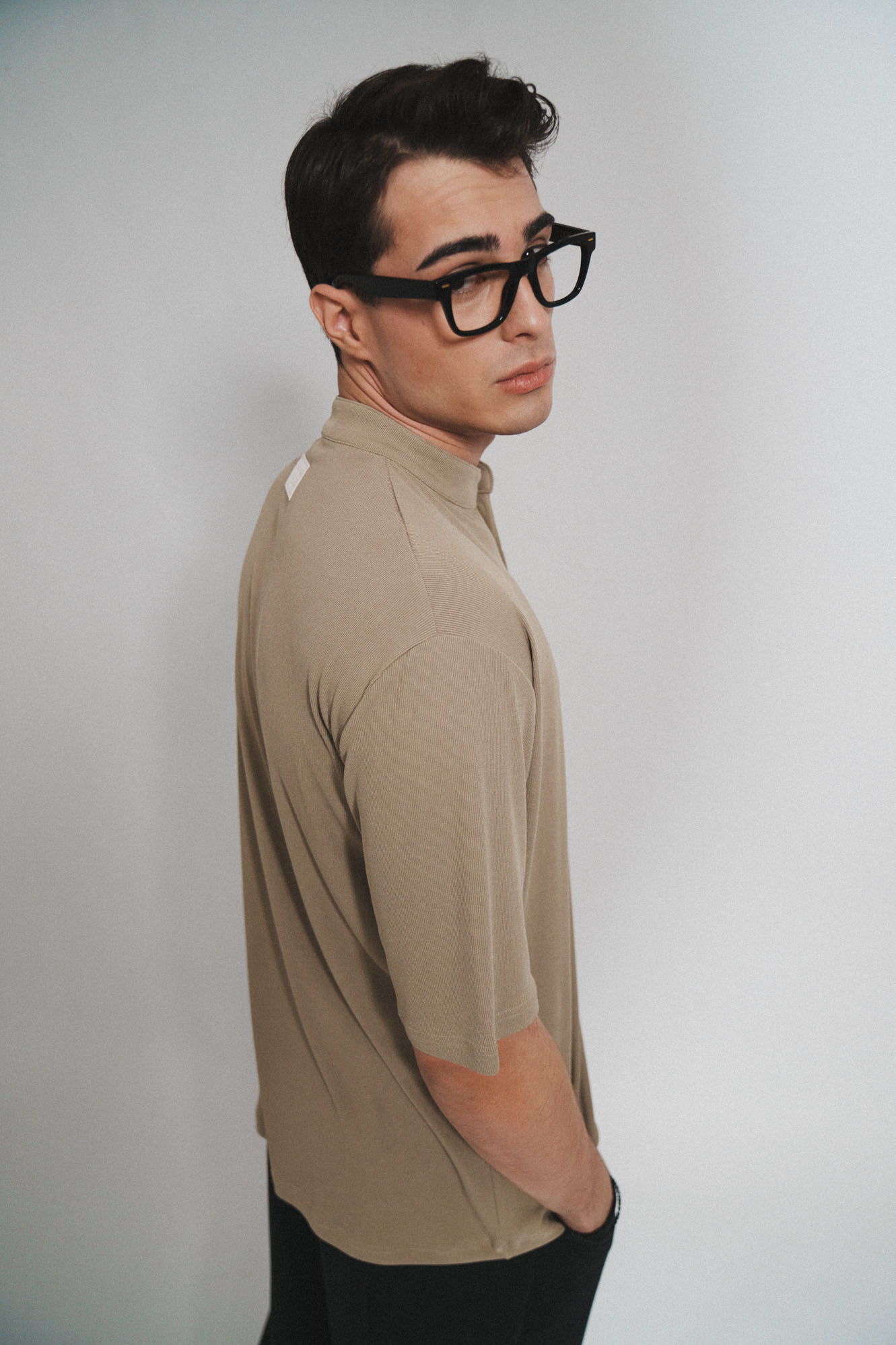 Μια μινιμαλιστικη μπλουζα με υφή ριπ σε απαλό μπεζ τόνο, με γιακά Μao επαναπροσδιορίζει την ανεπιτήδευτη κομψότητα. Η ελεύθερη γραμμή και οι διακριτικές λεπτομέρειες το καθιστούν ένα ευέλικτο κομμάτι για κάθε μοντέρνα γκαρνταρόμπα.