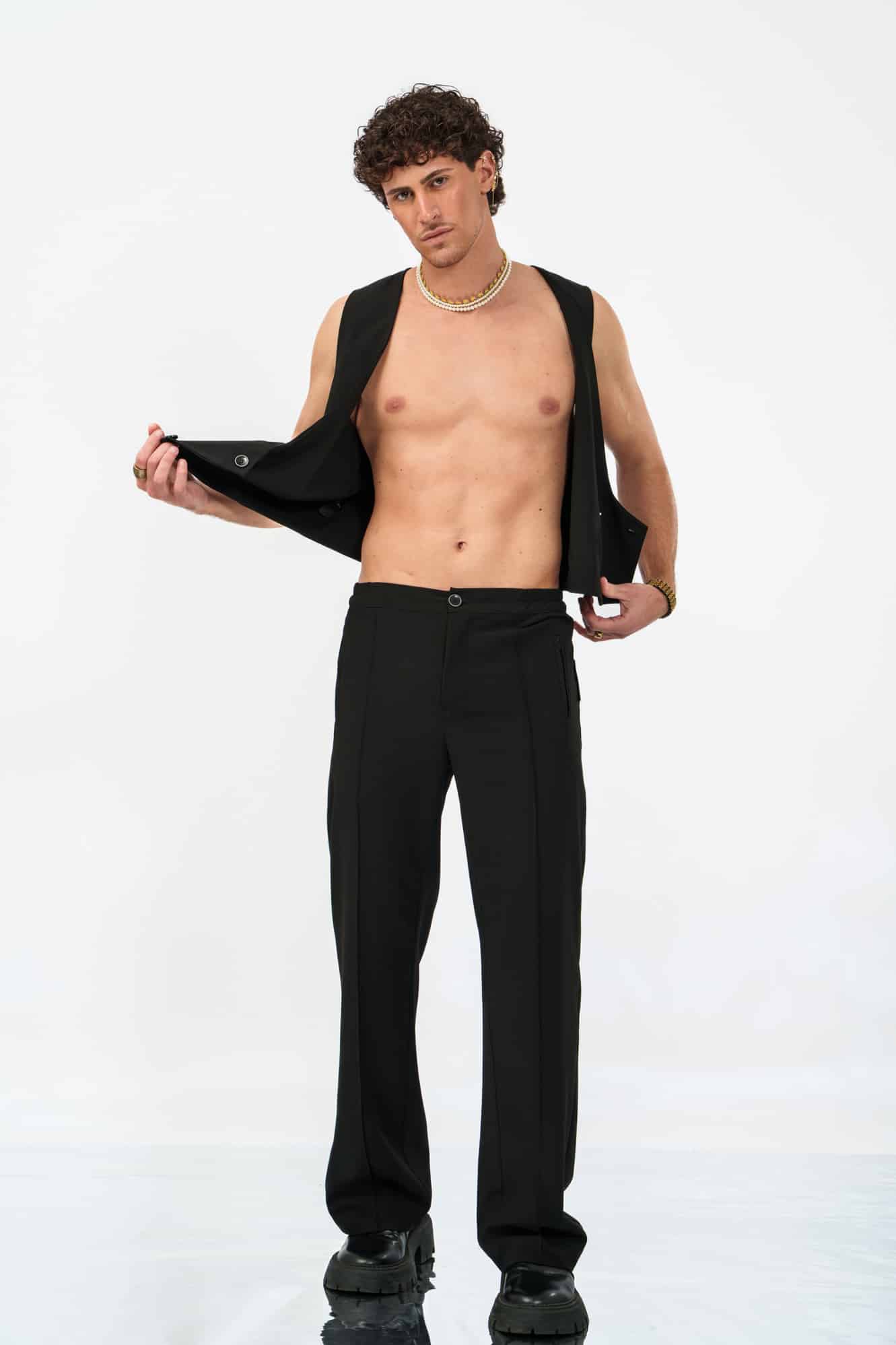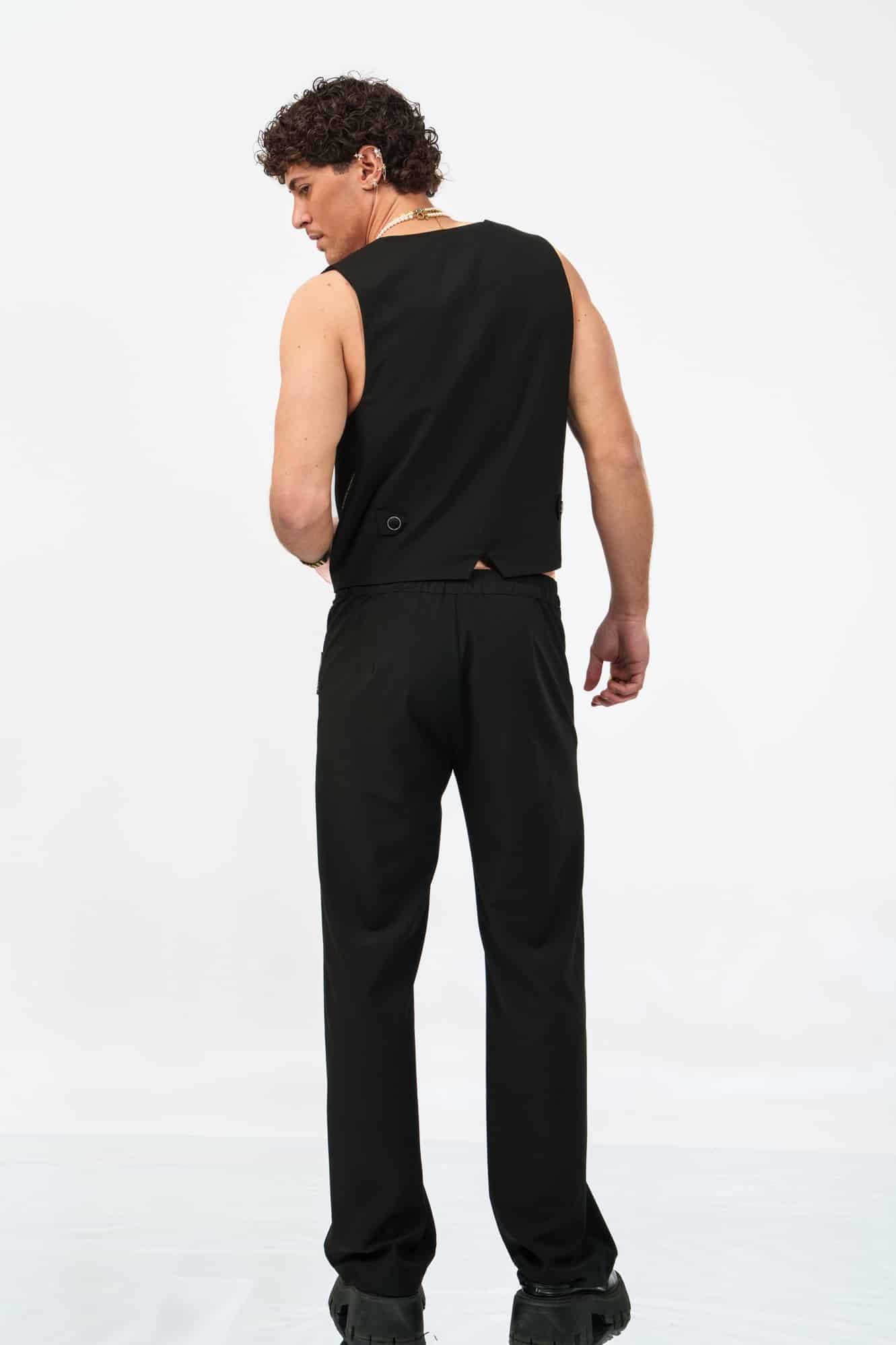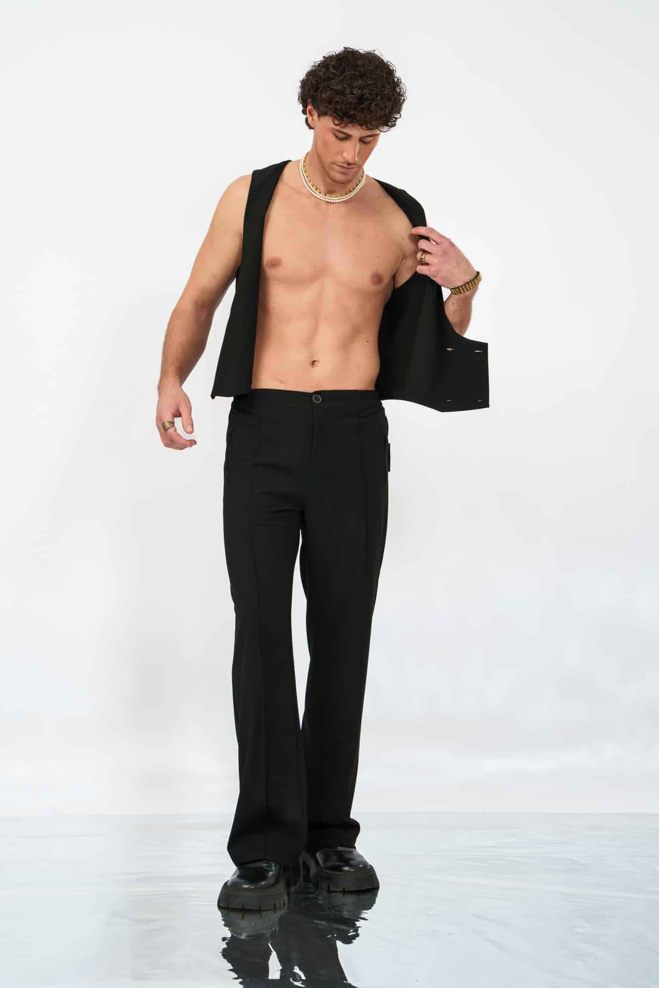 Το Precision Pants σε μαύρο είναι σχεδιασμένο να αγκαλιάζει το σώμα μέσα από μια στενή γραμμή που ανοίγει διακριτικά σε μια ελεγχόμενη καμπάνα στον ποδογυρό. Μια σύγχρονη εκδοχή του tailored elegance, που ισορροπεί ανάμεσα στην ένταση και τη ροή.