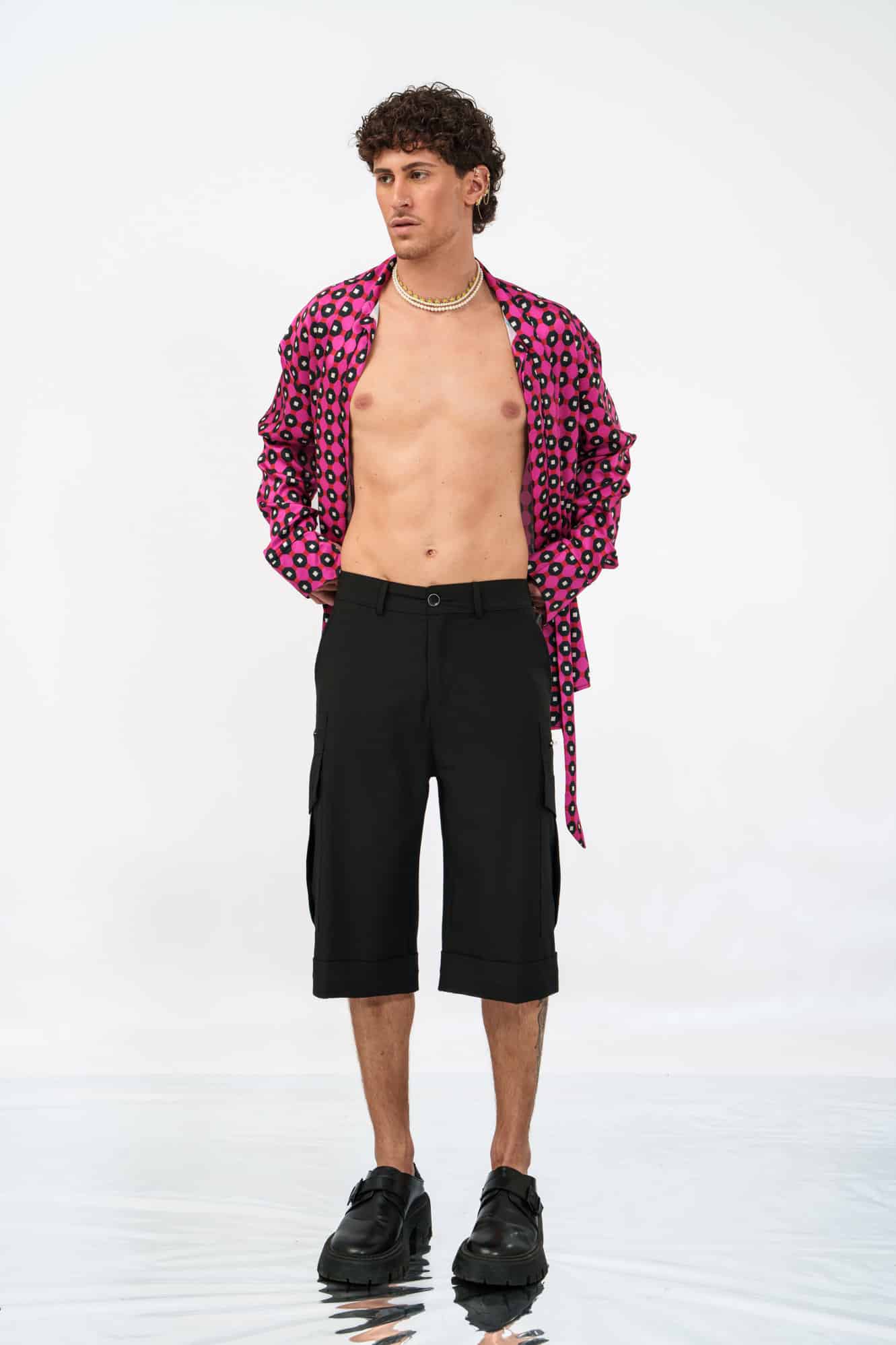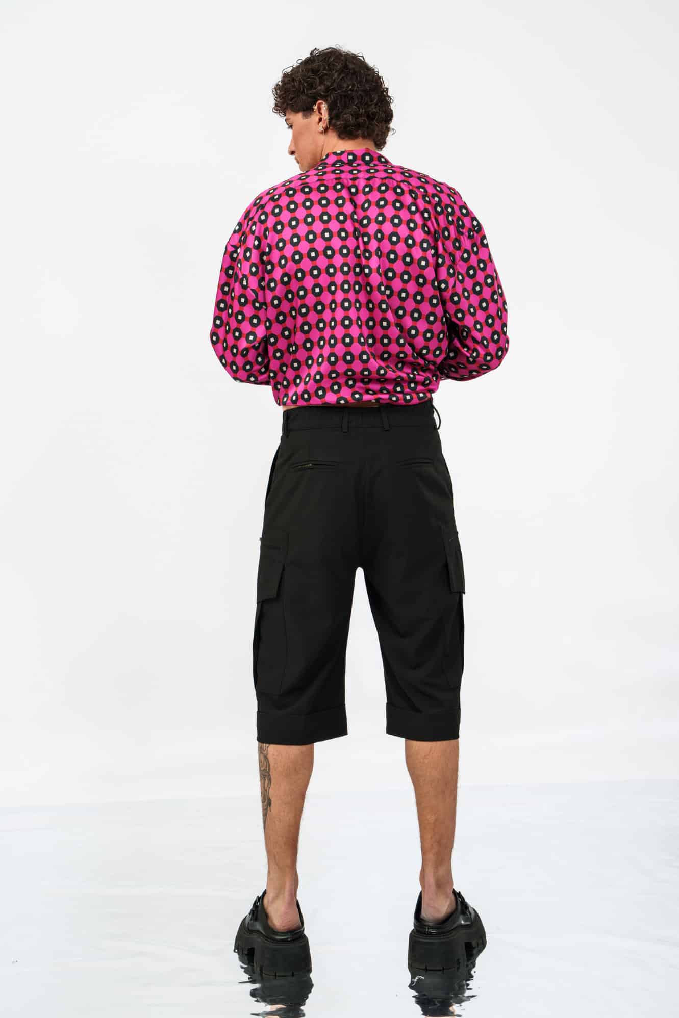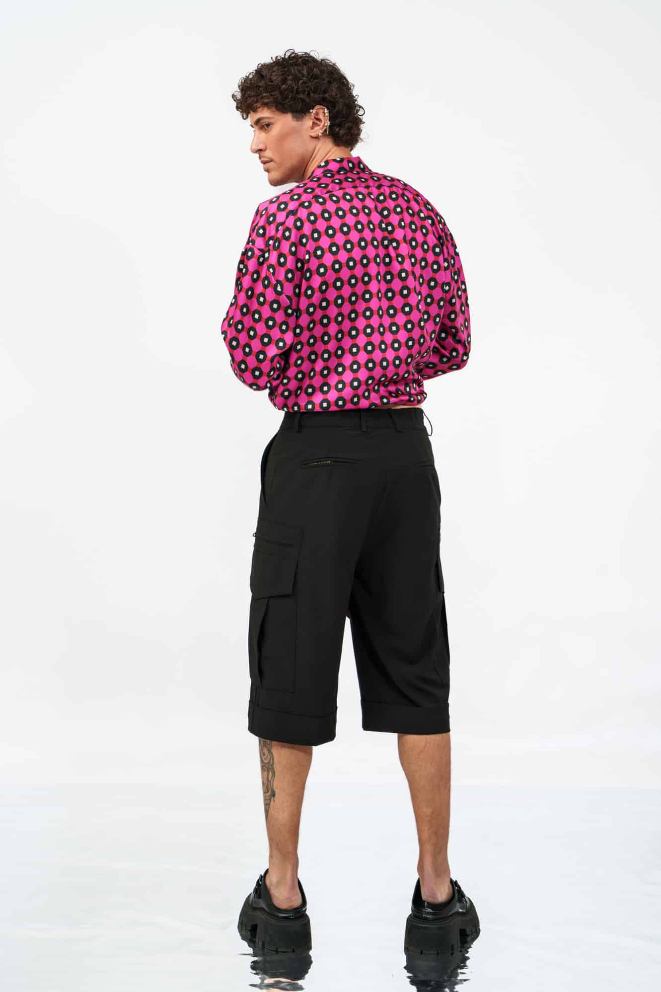 Το Riviera Shorts σε μαύρο αποτελεί μια δυναμική επανερμηνεία της κλασικής cargo βερμούδας. Με μακρύ tailored μήκος που φτάνει μέχρι τη μέση της γάμπας, δημιουργεί μια έντονη, σύγχρονη σιλουέτα.