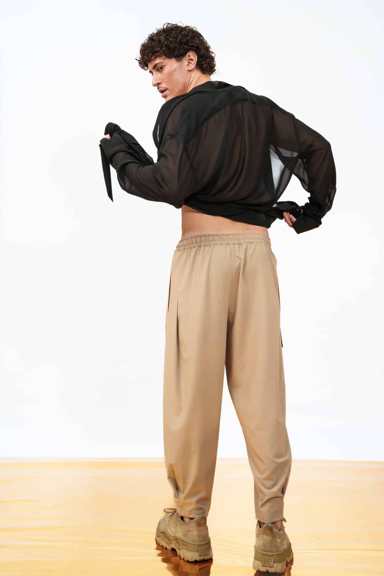 The Sauvage Pant combines a relaxed volume on the upper part with a cigarette cut that tapers at the ankle, creating a sharp, modern silhouette. Crafted from four-season suiting fabric in a sand beige tone, it gives you both versatility and refined presence.